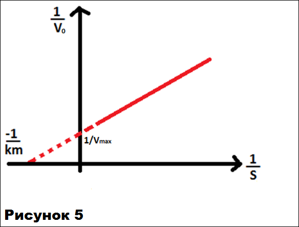 Принимая обратные значения с обоих сторон уравнения Михаэлиса- Ментена, получаем: