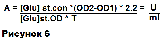 OD – оптическая плотность образца, T - время проведения реакции, (100) - коэффициент для пересчёта на (1) мл. [Gluk.st] - концентрация стандартного раствора глюкозы, [Gluk.std.OD] - оптическая плотность стандартного раствора глюкозы. Измеряется концентрация белка. Соотношение активности (мл), и концентрации белка, даёт удельную (относительную), активность, А (удельная) = А U/ml/мg/мl = А U/мg.